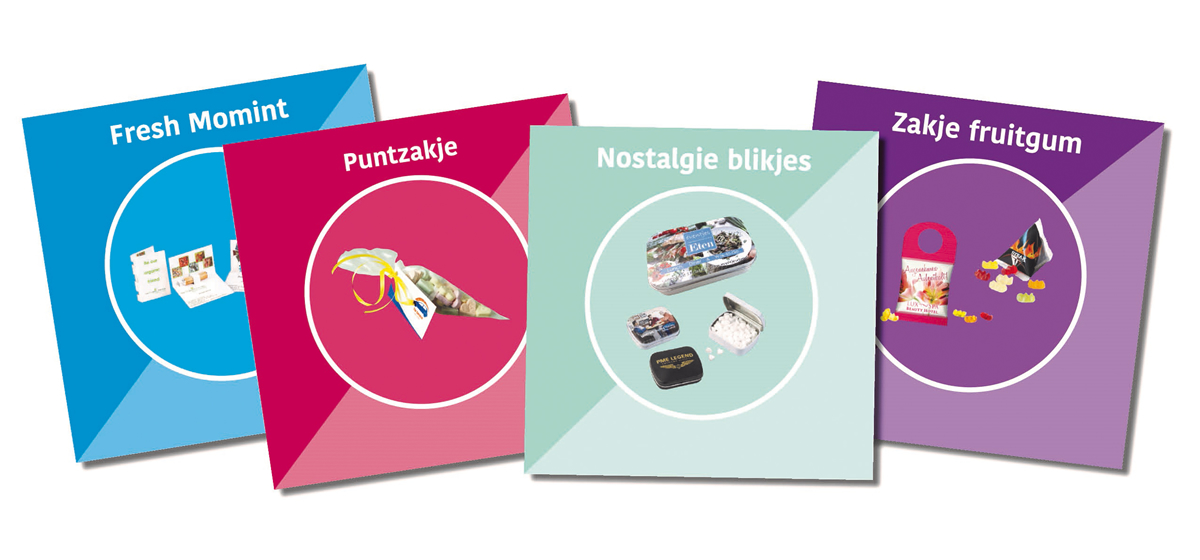 Wij hebben een uitgebreid assortiment pepermunt, chocolade en heel veel soorten snoep. Met meer dan 25 jaar ervaring maken wij overal een passende verpakking omheen met daarop uw bedrijfslogo. Op onze website vindt u al veel inspiratie! Neem gerust contact met ons op voor een gesprek over de mogelijkheden en maak gebruik van onze kennis: we denken graag vrijblijvend met u mee!