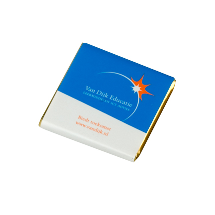 Onze vierkante chocolade carrés zijn de ideale keuze voor een persoonlijk relatiegeschenk of give-away. Deze smakelijke chocolaatjes, voorzien van een op maat gemaakte wikkel, zorgen voor een blijvende indruk bij klanten, partners en medewerkers. De wikkel is volledig naar eigen wens te bedrukken, zodat u een unieke uitstraling kunt creëren die perfect past bij uw merk of boodschap.
